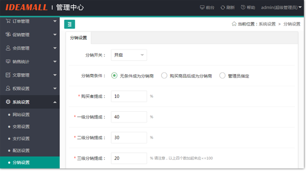 支持最多三級分銷