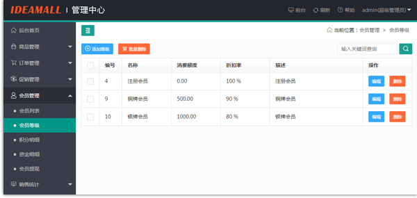 可以給不同等級會員設(shè)置不同折扣,結(jié)算時(shí)自動計(jì)算折扣價(jià)。開啟積分抵扣后,下單時(shí)可使用積分抵扣相應(yīng)價(jià)格!
