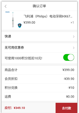 支持會員折扣、積分抵扣